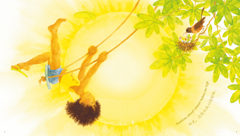 一个有着蓬蓬的褐色头发的小女孩在一大片金黄的底色上嬉戏,丹佛的词句跃然纸上。卡尼恩的图画仿佛散发着太阳的温暖。